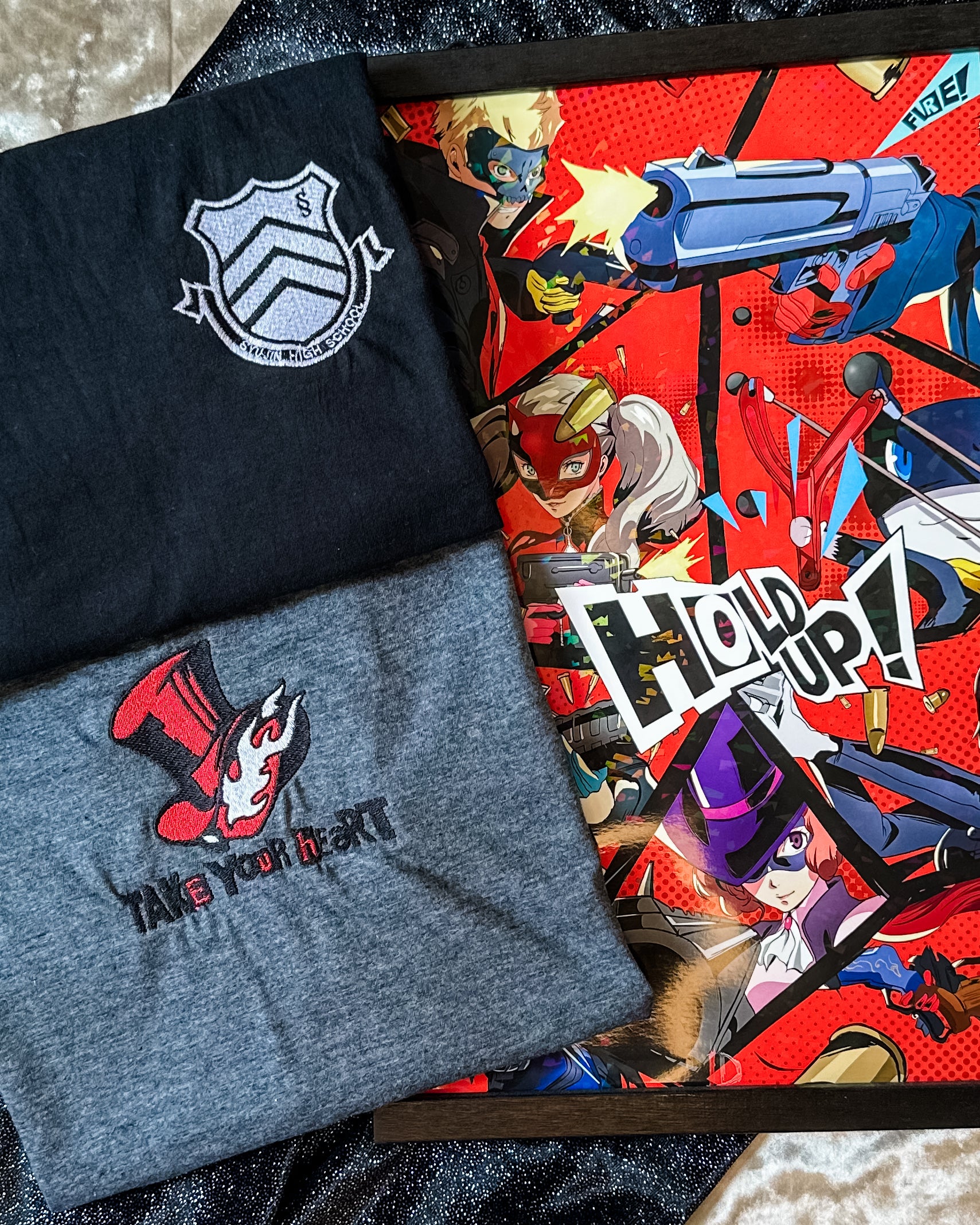 Join the ranks of the Phantom Thieves with this handcrafted embroidered sweatshirt featuring the bold "Take Your Heart" calling card design from Persona 5. Showcasing the iconic logo and rebellious spirit of the Phantom Thieves, this sweatshirt is a perfect nod to their fight for justice and freedom.