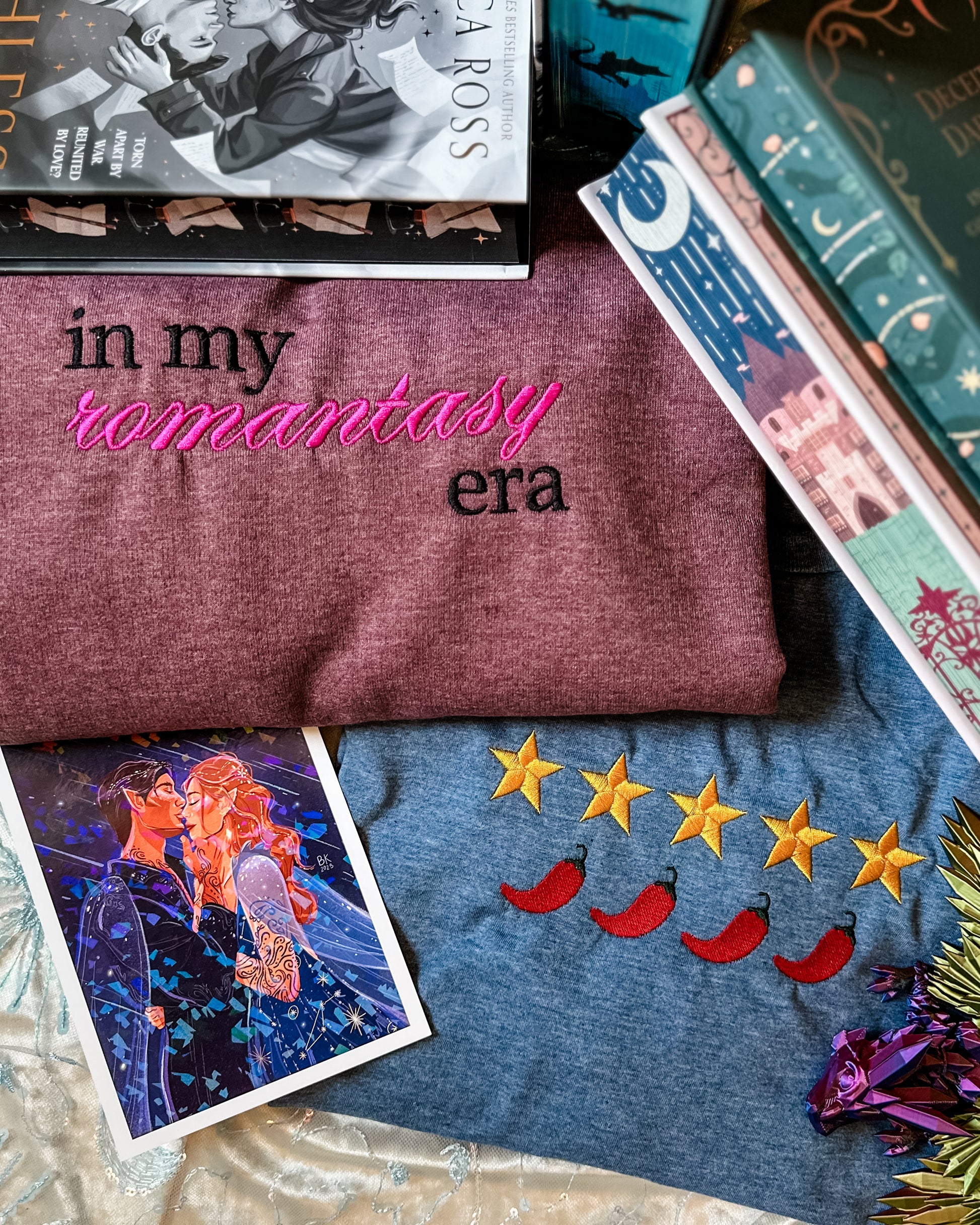 - Bookish Design: The "In My Romantasy Era" text is intricately embroidered in bold, vibrant threads, making it a stylish nod to romantasy fans.